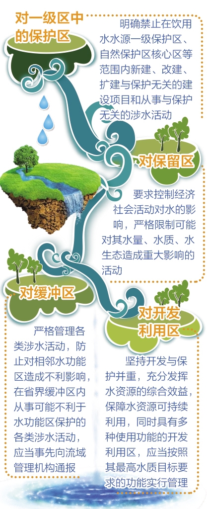 據(jù)介紹,原《水功能區(qū)管理辦法》對水功能區(qū)分類管理的規(guī)定比較簡單,修訂后的辦法將國務院批復的全國重要江河水功能區(qū)劃的要求寫入,對兩級不同類別的水功能區(qū)的管理逐一明確要求。